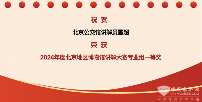北京公交馆讲解员雷超荣获2024年度北京地区博物馆讲解大赛专业组一等奖