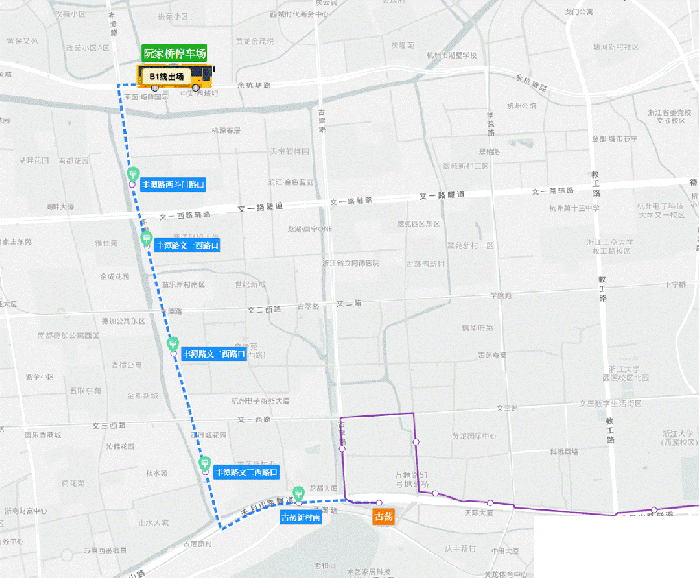 例如:利用B1线从阮家桥公交停车场出场的空驶里程套跑73路益乐新村至地铁古荡站路段。