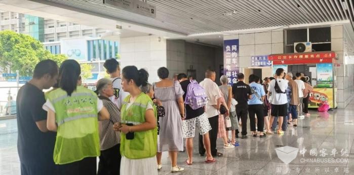 天气炎热,为确保各办卡点工作更平稳有序地开展,公司立即延长了火车站首末站办卡点服务时间,调整为早上8:30至下午17:30。同时出动党员先锋队,增派党员志愿者到首末站办卡点开展高峰时段的客流疏导等服务,引导并协助市民群众通过线上等渠道办理业务,提高办卡点办事效率。