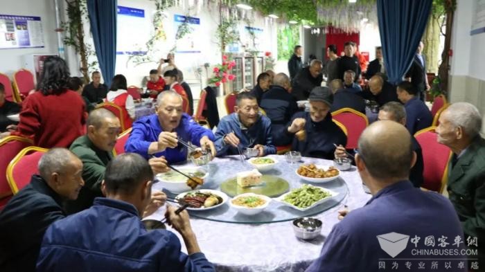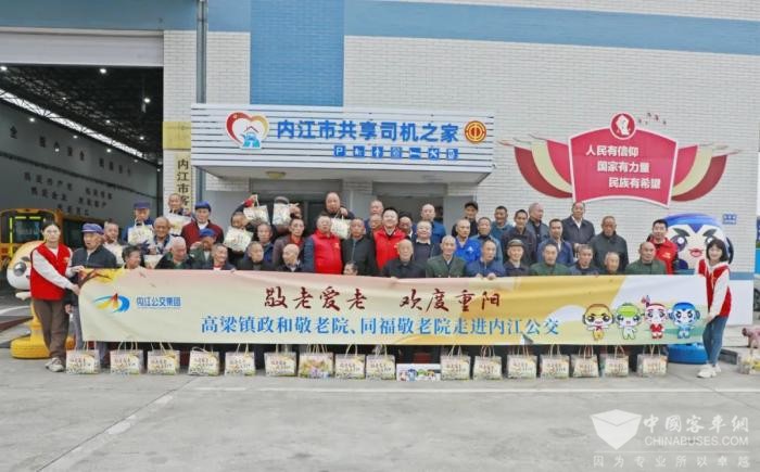 据了解,在重阳节前夕,为弘扬中华民族尊老敬老的传统美德,营造关爱老年群体的社会氛围,内江公交集团特地邀请结对帮扶敬老院老人们走进公交,了解公交发展历程,参观公交运营调度组织、党建文化、新就业群体服务阵地建设情况,听取他们对城市公交发展的意见建议。活动期间,集团党委书记、副董事长、总裁蒋光宁向老人们介绍了内江公交的发展情况,随后与集团党委副书记、监事会主席周建书,党委委员工主席袁劲松向老人们发放了礼包,并向敬老院赠送了巴士精灵文创IP,大家一起愉快地合影留念,中午时分在公交员工食堂享用了重阳敬老宴。