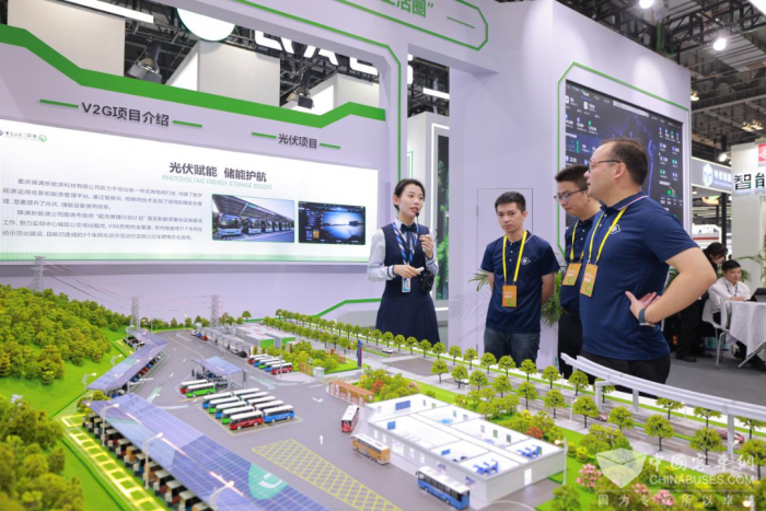 展会上,驿满新能源公司通过智慧能源沙盘展示、数字平台演示等,展出了超充、V2G、分布式光伏、CQCER项目等创新成果。其中,全国首个集光伏站、储能站、电动汽车V2G充、放电站为一体的示范站的沙盘模型成为展会的一大亮点。该项目以“藏电于车”实现车网互动、即充即检、智慧化站场管理等功能,吸引了不少参展嘉宾和业内人士的关注。