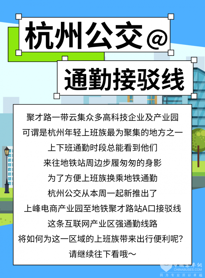 考虑到这一点,杭州公交从10月14日起开通了上峰电商产业园至地铁聚才路站A口接驳线,串联了附近的乐通科技园、三花江虹国际创意园、新东忠科技园、聚光科技产业园、上峰电商产业园等多个企业园区,直达地铁口。