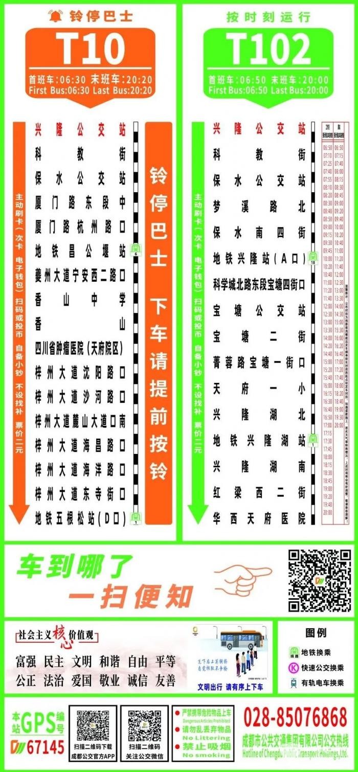 站点设置:地铁兴隆站(C1口)、晟天新能源、成都科创生态岛北、成都科创生态岛南、兴隆湖东、银梯东一街北、创意南路东、创意南路、创意路红梁东二街口、创意路红梁东一街口、红梁街创意路南路口、红梁街、红梁街口;
