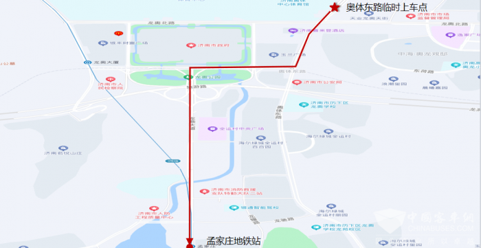 停靠站点:龙奥东路路东临时上车站(奥体中心5号口以南)、燕山立交桥北(K50路东公交站)、葛家庄(K102路北公交站)、泉城广场(K52路北公交站)。