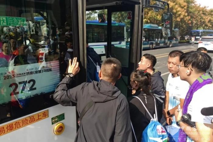 比赛当天,组委会工作人员持工作证、参赛选手持参赛号码布可免费乘坐以上临时摆渡线路,同时还可免费乘坐济南公交所属的其他公交线路。