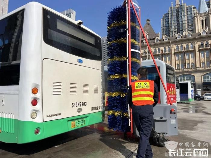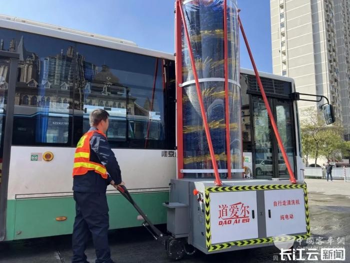 武汉公交新添“洗车神器” 纯电动自行走洗车机省时省力