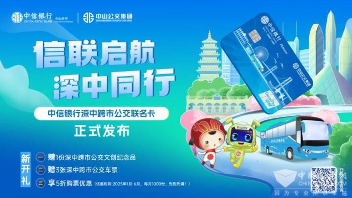 2024年10月26日上午,深中跨市公交联名卡发布会在中山市博览中心盛大开启。据悉,联名卡由中信银行中山分行与中山公交集团联合发行,既搭载金融服务功能,又具备智慧公交及乘车优惠功能,持卡市民前半年可线上抢购深中跨市公交专线车票优惠券,享受出行优惠权益。
