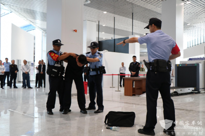 本次应急演练实操培训环节共设置了四个演训项目:一是安检携带违禁品应急处置演练。突出严查防范与高效处置旅客携带刀具等违禁危险品乘车。二是突遇反恐分子应急处置演练。突出严防与应急处置站内暴恐分子恐怖袭击事件。三是人员疏散应急演练。突出遇火灾险情时协同组织快速处置与自救和互救。四是消防栓及灭火器实操演练。突出职工掌握和正确使用消防设备的技能。