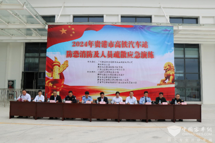 10月28日,由贵港交投集团、市总工会、市大数据发展和政务局、市公交公司联合主办,市公安局港北分局、南宁铁路公安局贵港站派出所、市道路运输发展中心、市公安局交通警察支队一大队、市交通运输综合行政执法支队直属大队协办的2024年贵港市高铁汽车站防恐消防及人员疏散应急演练实操培训活动在贵港市高铁汽车站举行。