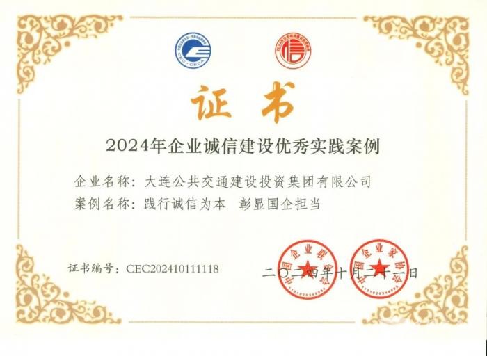 大连交通集团获评2024年全国企业诚信建设实践优秀案例