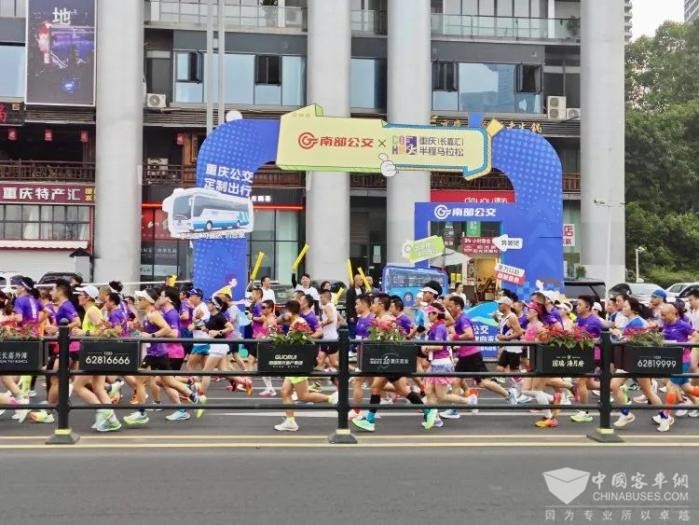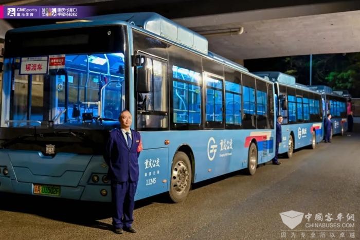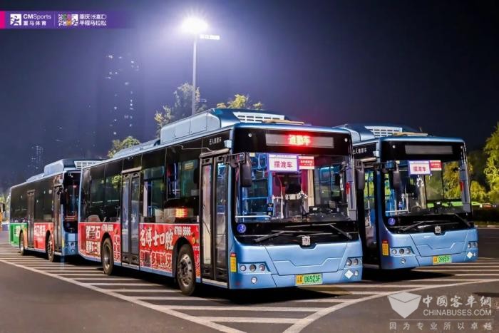 为保障马拉松顺利进行,重庆公交集团南部公交共计投入摆渡车40台,运行班次155班,疏运人次约8134人次;志愿者疏运车35台,疏运志愿者约1750人次。