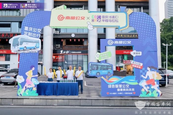 在距起点喜来登酒店3.5公里处,是南部公交的能量补给站。这里为跑友们准备了充足的矿泉水、毛巾等补给品,还有热情的公交工作人员们拿着加油棒为跑者们加油助威。