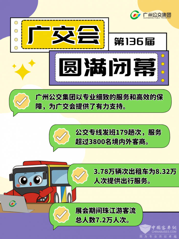 为确保广交会期间交通顺畅,让境内外客商感受广州的独特魅力,广州公交集团推出了高品质公交保障服务。