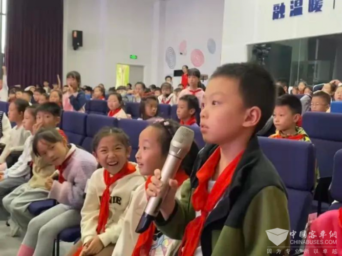 在融创小学会议室,“重庆公交小蜜蜂”董忱走上讲台,用丰富生动的PPT动画视频、浅显易懂的语言讲解如何安全乘坐公交车。同时还开展了生动有趣的互动问答,让学生们在轻松欢快的活动氛围中加深了对安全乘车知识的理解和记忆。