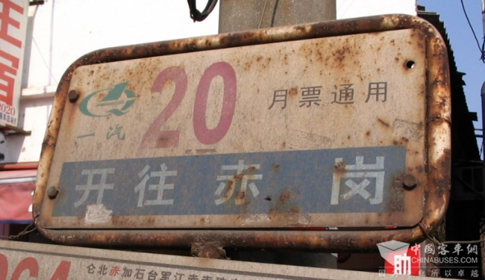 赤沙乡站小尺寸20路丝印站牌,仅存这张正面特写(汤晓明摄)