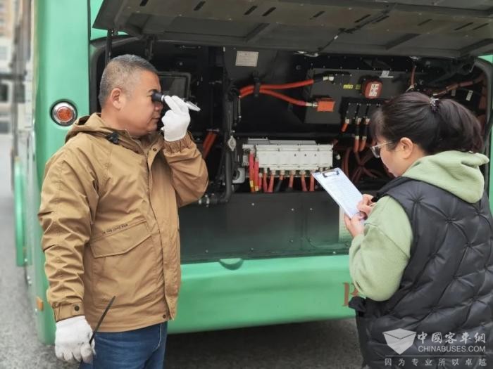 “检测合格车辆可以参与正常运营,不合格车辆一定要及时整改,确保防冻液效果处于合格水平。”检测过程中,机务保障人员一边利用手中的专业仪器有序展开“冰点检测”,一边认真记录每一辆公交车的“健康数据”,确保所有检测结果详实有效,切实为车辆健康把好脉。