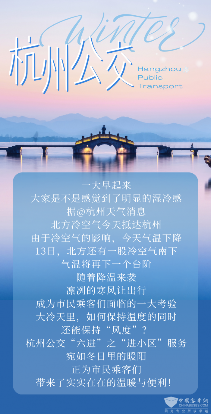 “六进”服务“进小区”的持续推进和不断完善让市民乘客每一次顺利、舒适、温暖的出行都能感受到来自杭州公交的用心和温度为构建和谐美好的城市生活画卷添上了浓墨重彩的一笔。
