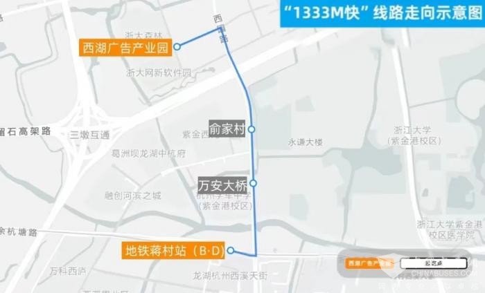 一站直达的“1333M快”与1333M路相比,沿途不停靠任何站点,从地铁5号线蒋村站直达西湖广告产业园,为这一带的上班族的早高峰通勤路带来加速度,缓解了以前地铁站出站后人流拥挤的现象。