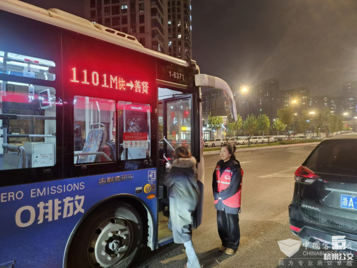 这条“大站快线”充分考虑到了乘客从市中心核心地带乘坐地铁后换乘公交返回崇贤一带的出行习惯,在晚间平峰时段发放了3个班次,以区域内乘客的出行时间为基础开通,让乘客的晚间出行更高效。