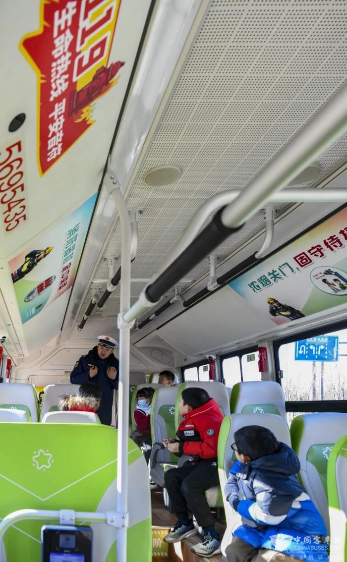 “电动自行车停充守规范,火灾隐患远离保平安”“119,生命热线,平安音符”“浓烟关门,固守待援”……消防主题通学公交车在整体设计上与消防元素紧密结合,车身外观贴有醒目的消防宣传标语;车内看板、扶手、座椅靠背等部位不但设置了醒目的消防主题元素和提示性宣传标语,还介绍了防灭火常识、灭火器使用方法、疏散逃生等一系列消防安全知识,同时,座套也被精心设计,绘制了色彩鲜艳、生动形象的消防小常识,让上下学的乘客在举手投足间、潜移默化中获取消防知识,达到“耳濡目染、潜移默化”的宣传效果,丰富了他们的乘车体验,将路途乘车中的时间变得充实而有意义。