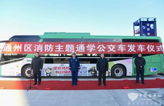 2025年1月10日上午,通州区举行消防主题通学公交车揭牌启动仪式。伴随着鸣笛声,消防主题公交车缓缓驶出车站,标志着北京市第一批特色消防主题通学公交车正式投入运营服务。