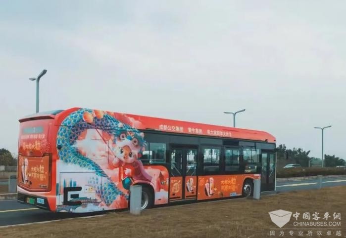 在乙巳蛇年到来之际,成都公交“灵蛇流光”生肖主题巴士在1路、3路公交车上精彩上线,主题车将传统文化元素与现代创意设计巧妙融合,车身涂装以象征着吉祥、喜庆的红、金为主色调,红金相间的车身设计,寓意着红火与富贵,车身上的蛇则以灵动的姿态与现代灯光技术相结合,夜幕下犹如一条闪耀的灵蛇穿梭于城市的大街小巷,为市民们送上新春的祝福。快来偶遇公交新春“限定皮肤”吧~