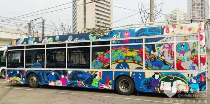 金山农民画色彩明快、造型稚拙,具有江南水乡的独特风韵。此次喷绘在公交车上的农民画,生动展现了贴春联、拜年、压岁钱、舞龙舞狮、吃团圆年夜饭等经典春节场景。当天,金山区文旅局还在20路中山公园站台为市民准备了舞龙表演、糖葫芦制作摊、农民画及剪纸传承人现场创作等活动,吸引乘客纷纷驻足。