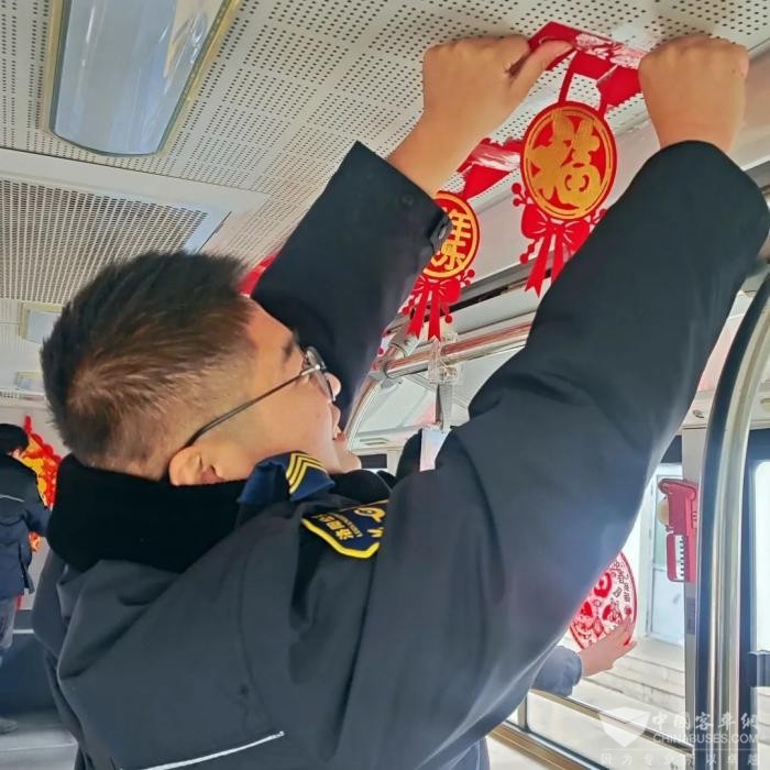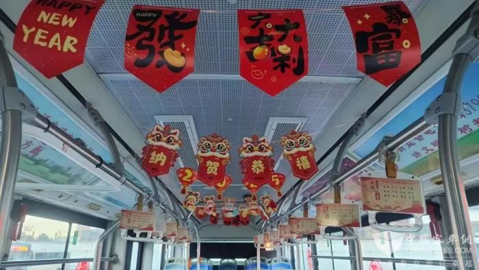 为营造新春佳节喜庆氛围,让市民乘客在车厢内感到浓浓年味,让一线坚守的职工充分感受到家的喜庆团圆,中国完美作业网有免费视频2025年1月26日获悉,近日,各单位都在如火如荼地开展新春氛围布置活动。走进场区大门,火红的灯笼一盏盏、一串串高高挂起,浓浓的年味扑面而来,整个场区沉浸在喜庆、温馨的新春氛围之中。走进公交车厢,拉手上系着的红色拉花,车窗上贴着的喜庆窗花,小灯笼、福字中国结点缀其间,整个车厢仿佛变成了一个流动的新春乐园。