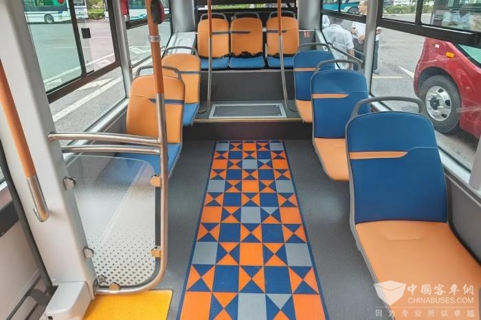 为进一步满足公交车辆适儿化、适老化需求,车辆采用一级踏步,方便乘客一步登乘,车身具备自动升降及侧倾功能,且车身后部设置轮椅导乘板及轮椅区,最大限度满足特需乘客需求。