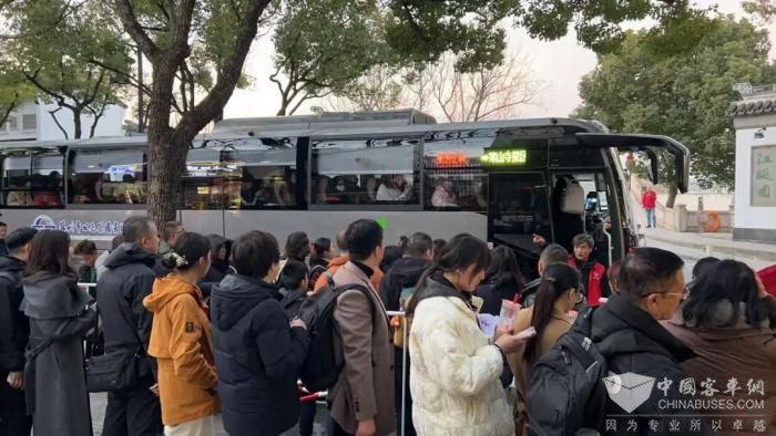 春节期间,团体出行优选苏式旅游定制公交,为给游客带来“私人定制”般的专属线路服务,满足个性化出行需求。定制公交上采用随车的“公交管家”提供专业的出行指引和贴心的服务,确保外来游客的旅途愉快而顺利。此外,还特别提供行李免费寄存保管服务,让游客摆脱行李的束缚,尽情畅游苏州古城,感受别样的“酥”式年味。