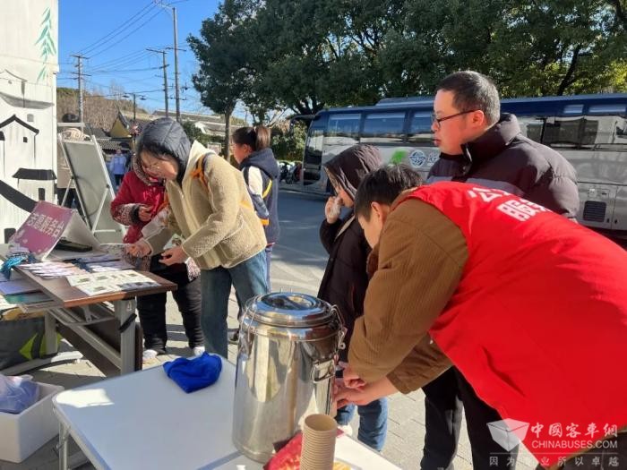 在寒冷的冬日里,苏州公交集团在东汇公园换乘停车场、茅山塘停车场、火车站综合楼、寒山寺停车场、虎丘南门等多个地方临时设置了“暖冬服务站”,免费为市民和游客提供暖心姜茶。让大家可以在服务站里歇歇脚,喝杯热姜茶,驱散冬日的严寒,带着公交人的温暖继续游玩苏州。