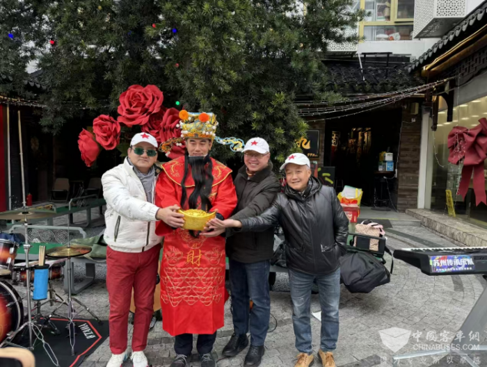 大年初五迎财神当天,9808路“十全十美”专线举行了以“玩味十全 招财进宝”为主题的“迎财神”活动,为街区商户及市民游客送上诚挚的新春祝福。活动中,“财神”装扮的讲解员顾诚在公交车上为每一位乘客送上美好的新年彩头,还开启“巡游”模式,在十全街上向过往的市民和游客赠送“财运”。