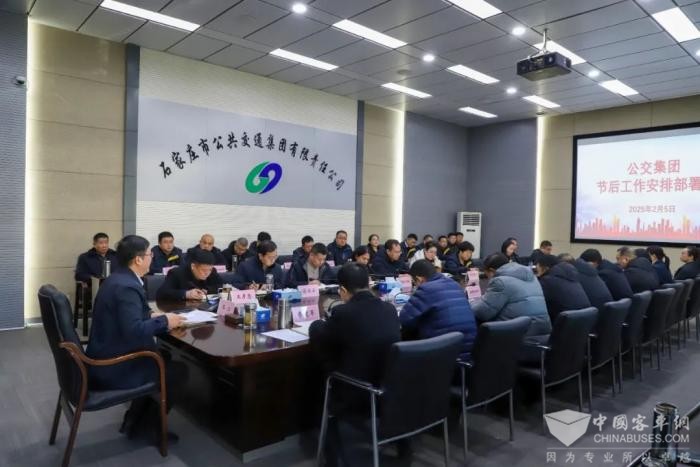 2025年2月5日,石家庄市公交集团召开节后工作安排部署会,动员全体干部职工迅速收心归位、调整工作状态,以更加坚定的决心、更加务实的作风,投入新一年工作中,奋力开创公交改革发展的新局面。集团领导班子、机关部室正副职及分(子)公司负责同志60余人参会。