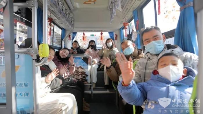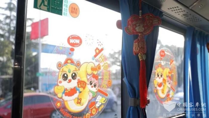 “春节好!祝您出行愉快!”在各大公交站点,公交党员、青年志愿者在服务咨询台前给过往乘客送祝福,维持运营秩序,开展各类暖心服务;新春主题车厢让市民游客的公交出行路上感受到浓浓“年味”。