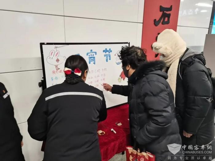 明珠路车队46路、905路调度室内,观贤社区的工作人员与居民代表早早等候,当公交车辆缓缓进站,大家热情地迎上去,将饱含心意的元宵递到驾驶员手中。汽车三分公司友谊车队519路和名贵山庄社区联合举办一场“猜灯谜,品汤圆”的共建活动。多种多样的谜题让居民和职工热情高涨,他们争相举手踊跃参与,猜对灯谜的都领到了精美的奖品。