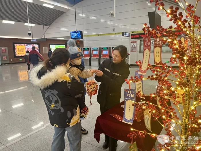 地铁5号线青泥洼桥站、劳动公园站、甘井子街站、石葵路站、龙华路站、中华东路站纷纷设置灯谜区,谜题内容涵盖传统文化、历史典故、生活常识、党史廉政及地铁知识,吸引乘客驻足竞猜。青泥洼桥站不仅准备了灯谜,还邀请乘客亲手制作花灯,一盏盏寓意吉祥的花灯在乘客手中逐渐成形,节日氛围浓厚。