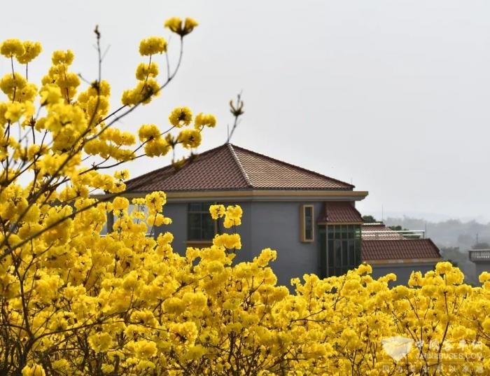 黄花风铃木每到花期,都是满树金黄,不见一片绿叶。那一朵朵喇叭状的花朵,簇拥在一起,在阳光的照耀下,闪烁着金色的光芒,仿佛整个世界都被这灿烂的金黄所点亮。