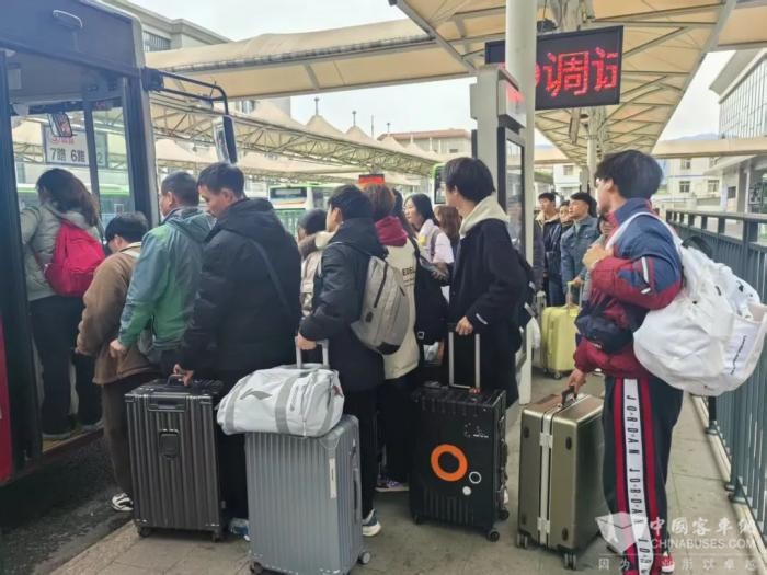 出行便捷、服务温馨的背后,是无数公交人的坚守与奉献。春运一线,400余名“公交绿”志愿者驻守火车站首末站、金垭机场等客流量密集的地方,坚守在莲花湖湿地公园、梨树坪湿地公园等重要游玩点位提供导乘咨询、行李搬运、特殊群体帮扶等服务。设立“艳阳天志愿服务队”车厢,免费发放饮用水、常规药品等物资,用微笑与行动传递城市温度,让春运归途成为暖心旅途。