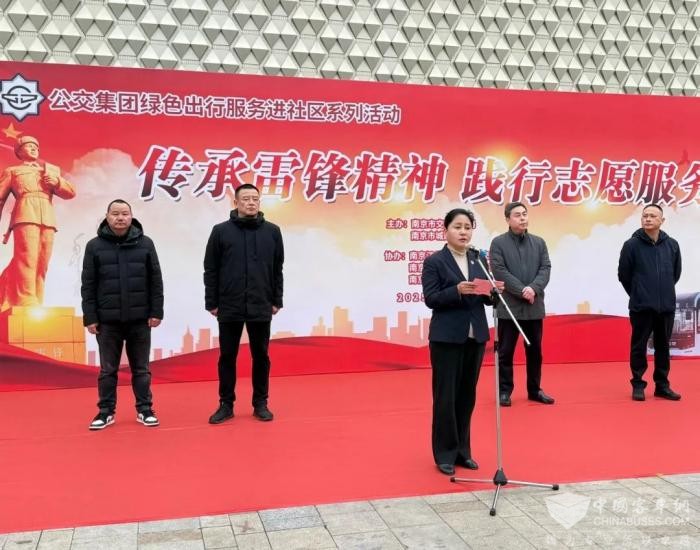 南京公交集团副总经济师周建军在讲话中指出,南京公交集团始终以雷锋精神为引领,以“为人民服务”为核心,通过聚焦构建“地铁+公交”微循环接驳体系,推出招呼站、响应式停靠等便民服务,打造敬老线、“交邮融合”等特色线路让市民的出行更舒心、更便捷、更绿色。未来,南京公交将持续深化三个“坚持”——坚持以需求导向织密微循环网络,实现“地铁到站、公交到家”;坚持以绿色创新驱动线路优化、线网布局、车辆运营等方面的可持续发展;坚持以共治共享理念推动服务品质升级,携手市民共创“地铁到站、公交到家”。