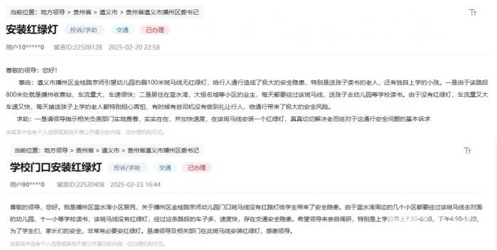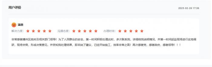 “为了人民群众的安全,第一时间积极处理此事,多次联系我,详细给我说明情况。”心愿通过人民网“留言板”得以实现,网友五星好评点赞该区急群众所急,“效率非常之高,非常感谢播州区政府及相关部门。”
