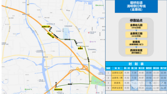 随着清明时节的临近,我市各大墓区迎来了一年一度的祭扫高峰。为保障市民乘客在清明前后祭扫出行需求,无锡公交集团惠山分公司联合堰桥街道堰桥社区,自2025年3月15日起开通两条清明祭扫专线:惠韵线和金惠线,确保市民出行便利。