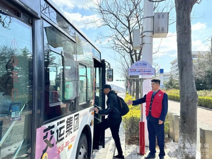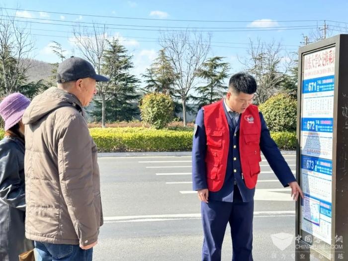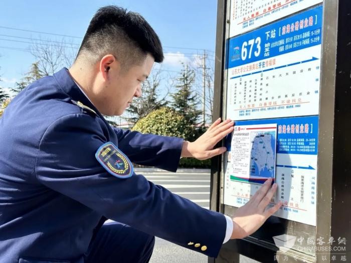 受即墨区鳌山卫街道问海路停车场施工影响,自2025年3月18日起,途经该路段的青岛城运控股交运温馨巴士674路、678路两条公交线路临时调流运行。为了让市民知晓这一线路变化,以免延误出行,温馨巴士蓝色硅谷分公司工作人员已在调流站的站牌处张贴了调流说明。此外,“馨飞扬”志愿者还走上公交站点,为乘客详细讲解线路调整信息,解答市民疑惑,保障有序乘车。