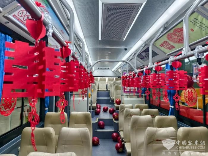 根据新人的要求,徐州公交提供了专业的私人定制“公交婚车”服务,对车辆内外进行个性化布置。只见车头悬挂着红绸,车窗上的“囍”字窗花与红色珠光气球相互映衬,温馨浪漫,车身上的温馨祝福更是显得爱意满满。他们用特别的“迎亲”仪式,驶向名为“幸福”的下一站。
