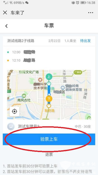 5.支付完成后,可以查看本次车票。首站发车前 30 分钟可以点击验票上车获得验票码,验票后不可再退票。