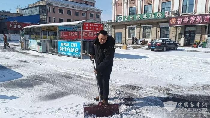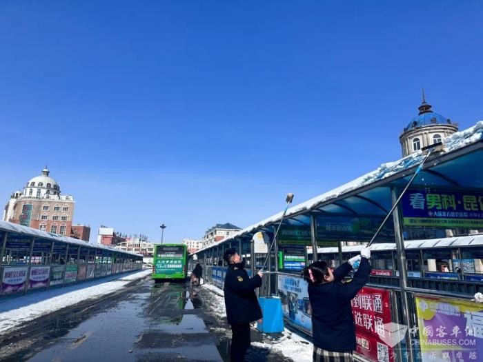 调度指挥中心各公交始发站站务人员及时清扫站场积雪,用“小行动”清出“温暖路”,确保公交车辆在站场正常通行。同时,他们拿起长杆扫帚,清理了20余块公交指示牌,确保每一条公交线路信息清晰可见,方便乘客乘车。