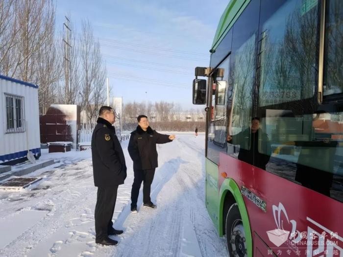 “走,咱们跟25路走一圈。”特殊天气,九车队队长张帆和安全队长王刚进行跟车,叮嘱驾驶员针对雪天路况复杂,注意慢行车、缓刹车,保持车距。