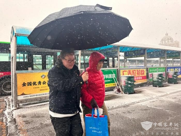 “阿姨您慢慢走,注意脚下安全。”“大爷,地面滑,您注意脚下......”风雪中,这样的温暖对话不断上演。大庆公交总站的安检秩序员们一手撑伞为乘客挡住雪水,一手稳稳搀扶着。他们如沐春风的温情服务,让乘客们感动。一位老人紧紧握着安检秩序员的手说到:“你们真是太暖心了,谢谢你们啊!”