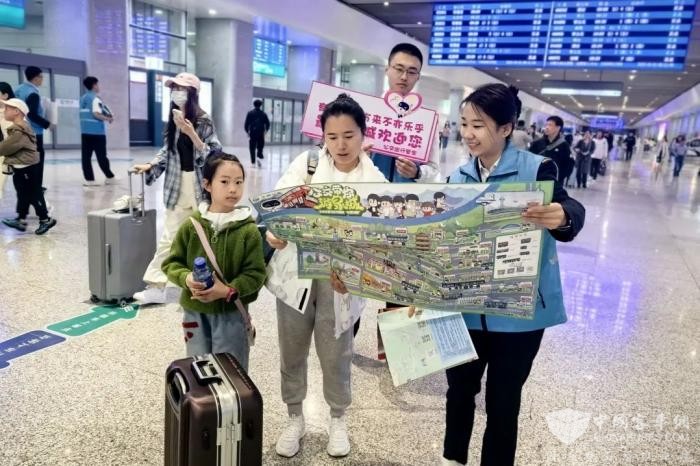出行管家们积极为市民游客发放“彩虹便民条”、便民乘车图等,维护登乘秩序、提供咨询服务,全力展示泉城好客形象。