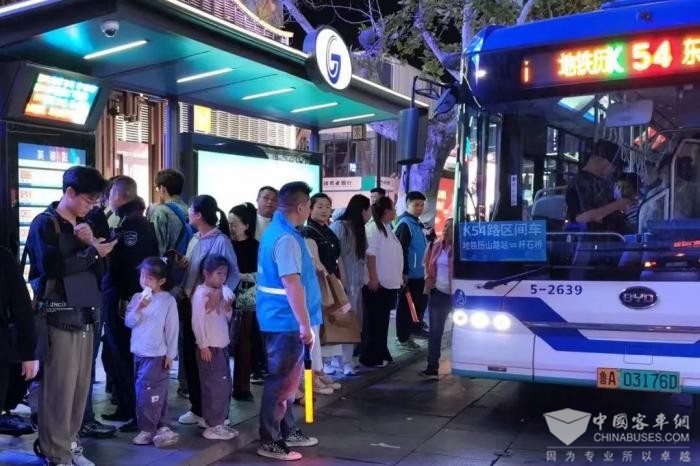 加强途经市区主要客流节点、各大景区、各大商圈等重要客流及交通集散点的线路班次投入,并结合道路情况、客流情况采取合理的调度形式,满足市民出行需求。
