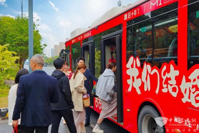 据盐城公交相关负责人介绍,公交婚车根据新人喜好个性化定制装饰,并提供星级驾驶员全程护航,确保安全性与仪式感并存。公交婚车以其宽敞舒适的空间,容纳了多达30名亲友,大家共同见证了这一幸福而难忘的时刻。